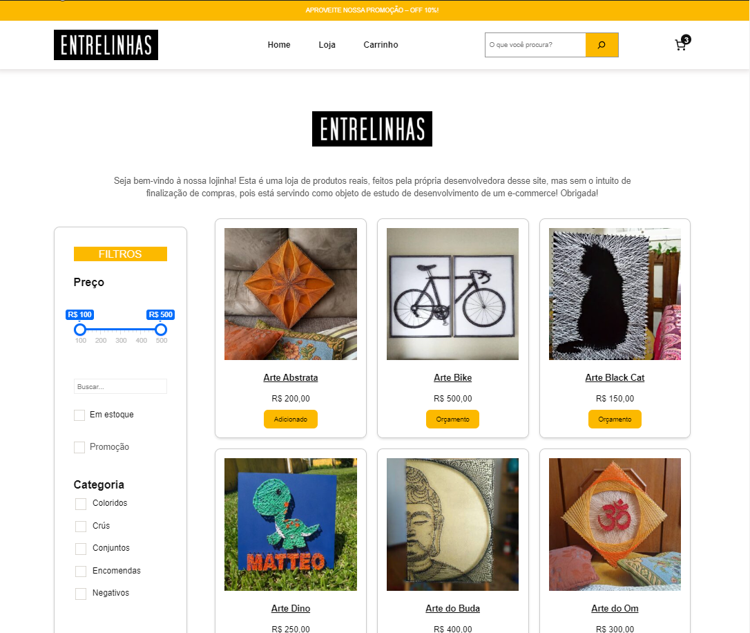 Criamos sua loja virtual, com cálculo de frete, pagamentos integrados, painel de controle de produtos, preços, pedidos e muito mais!